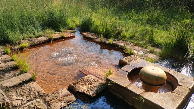 Návštěvníci procházeli po dřevěných chodnících po naučné stezce celou rezervací kolem mrtvé přírody, kde se místo zeleně nacházelo hnědé rašeliniště s bublajícími jezírky železité minerální vody.