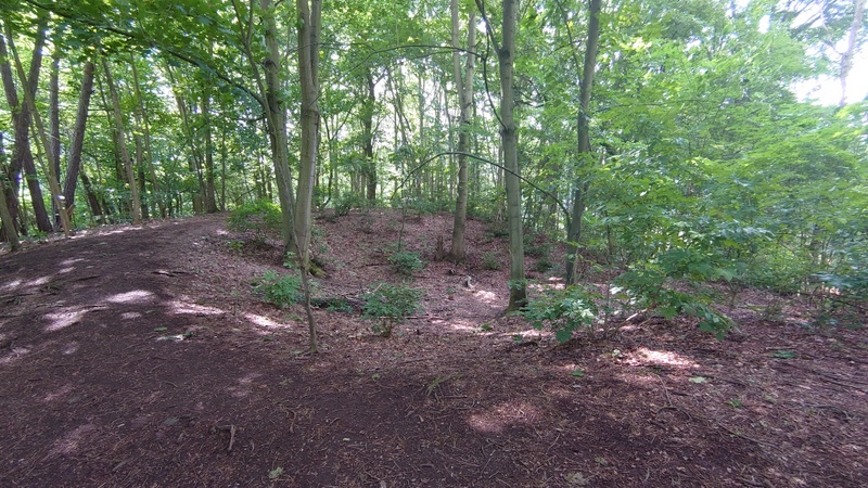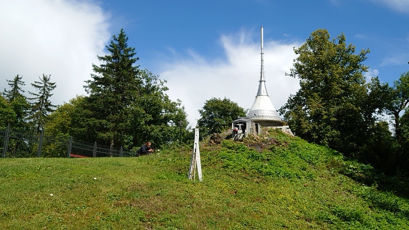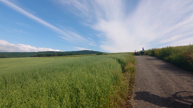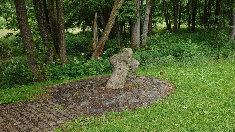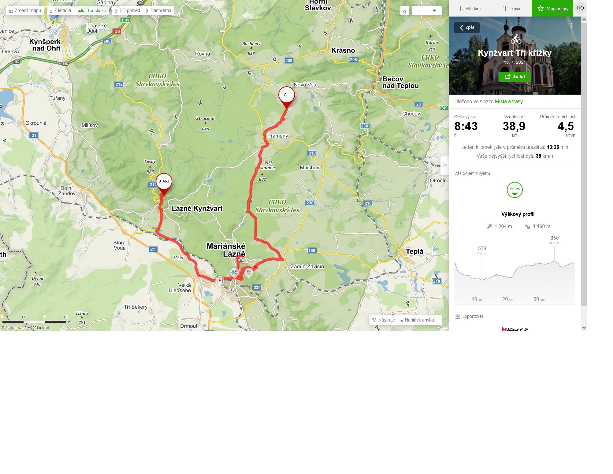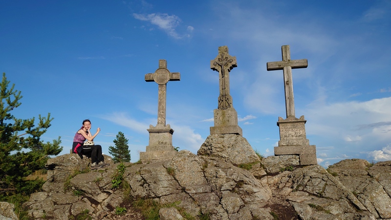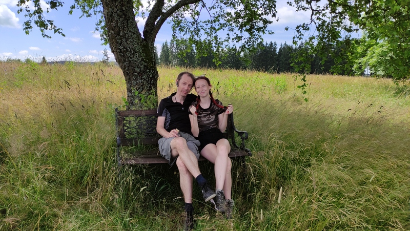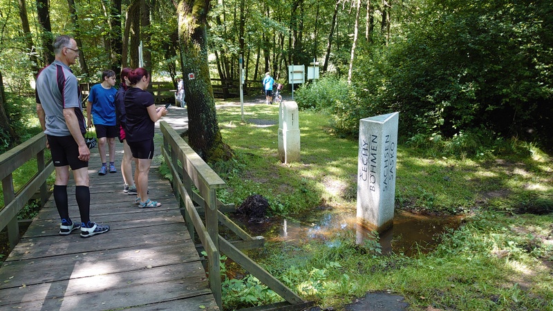 Ač jsem navrhoval projet pohodlnější cyklostezkou Německem, kvůli neexistujícímu covid pasu odmítli ostatní riziko podstoupit. Vrátili jsme se k signálce a trpěli jízdu z kopce do kopce. Slunce hřálo a stínu pomálo. Táhlé vyasfaltované rovné stezky podél „čáry“ nám ubíralo sil, přestože jsme se snažili je vyjet/vyjít. Já osobně některé šel, poněvadž jet rychlostí chůze, zdá se mi trochu neefektivní. Na vršku u křížku si parta odpočala.