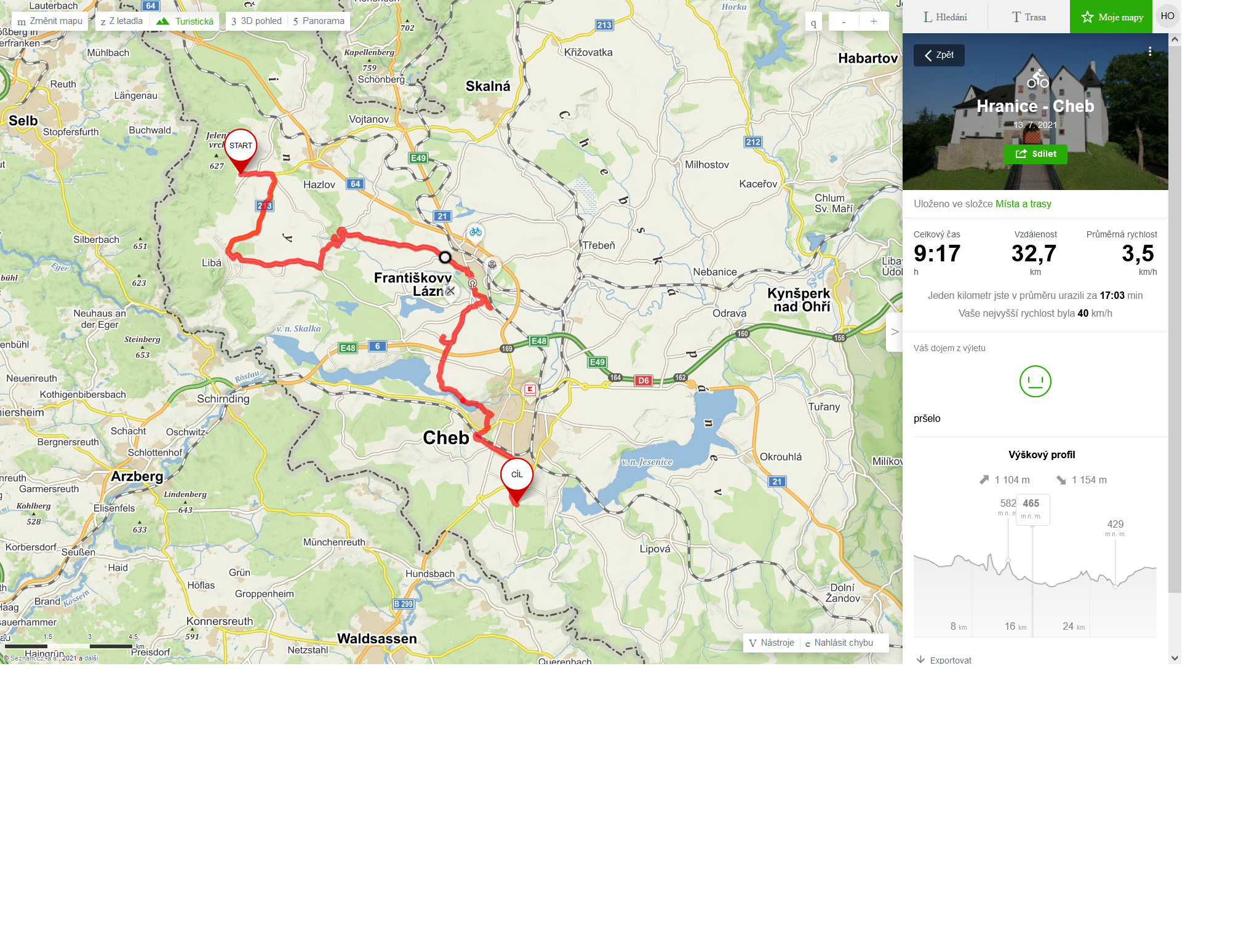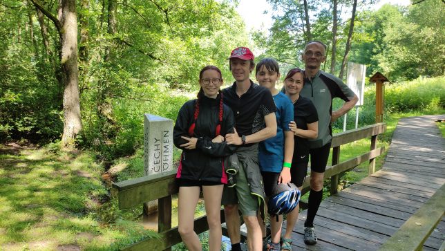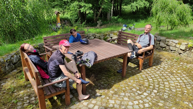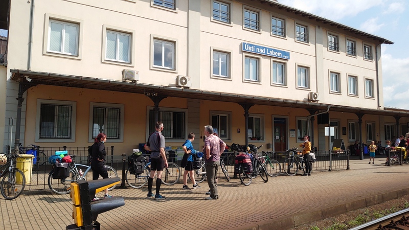 Sobotní brzké ráno v 7 hodin na nádraží spojem směr Děčín, Ústí nad Labem, Cheb začalo týdenní putování po západě země s brašnami na kolech. Stan se v týdnu nestavěl jenom jednou, na rozdíl od minulých let, kdy se používal minimálně. Spacák, karimatka, plynový ohřívač, moskytiéra, oblečení, power banka, lano, jídlo, voda to vše bylo součástí mého vybavení. Každý se vybavil dle možností. Prožít dovolenou na kolech se odvážilo sedm členů party. Já s dcerkou, Šárka, Maruš Jarda, Vladimír se synkem Štěpánem. Ten využil pro jízdu elektrokolo stejně jako Maruška. S dvěma přestupy jsme po šesti hodinách vystupovali na konečné v Chebu.