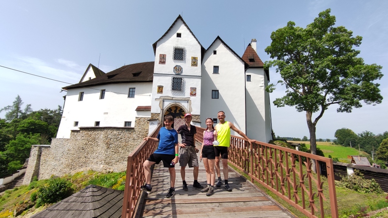 Nasnímali jsme video pro ostatní, které je přílohou na youtube. V Závišíně jsme s Anežkou odpočívali u palačinky. Čekala nás cesta lesem, kde slunce tolik nepálilo.