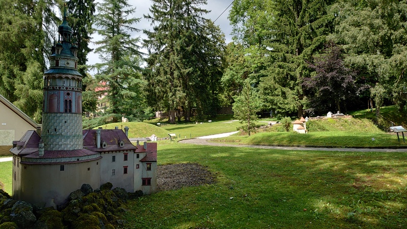 U nás se dramaticky změnilo počasí v době, kdy jsme seděli pod slunečníky na obědě. Vydatná silná průtrž s kroupami trvala déle než radar ukazoval. Rodiče mi dali tip na návštěvu unikátních miniatur v parku Boheminium nad Mariánskými lázněmi u hotelu Rubezahl, který jsme využili.