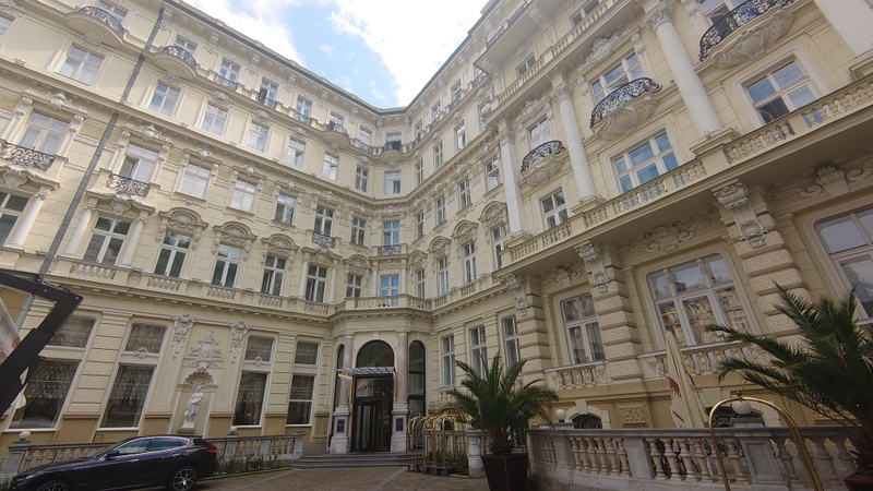 Za dvě hodinky se již ukládala kola na nádraží do úschovny, kde mohli být do 18 hodin. Limit dvou hodin byl dán, nasedli jsme na místní MHD a přiblížili se ke Grandhotelu Pupp,