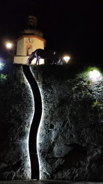 Nad Kopaninou se za soumraku lehce rozvalovala nadejchaná mlha, načež jsme těžce stoupali se světly lesem po lesní stezce podél hranice s Německem s nedalekým Bad Elsterem. Jízdou lesním terénem za noci doprovázeni světluškami, se muselo jet velmi opatrně. Štěpánek statečně odolával nehmotným nestvůrám, kdežto my se vyhýbali hmotným loužím co za den vznikly. Všichni jsme si oddychli vidíc konec zabahněné trasy u Krásňan, obce s přechodem do ciziny, my však odbočili k městu Hranice a užívali si teplé noci na opuštěné klesající silnici až do města Hranice. Na centrálním náměstí ve 23 hodin jsme jediní rušili noční klid prohlídkou zdejší nízké vyhlídky se sochou koně nad náměstím.
