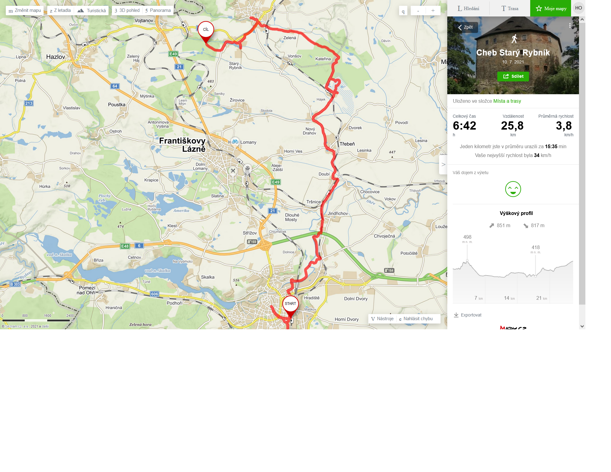 Letošní červencovou dovolenou na kolech naplánovala Šárka s touhou podívat se do západních Čech po lázeňských městech a zároveň doplnit další kamínek do mozaiky ohledně nejdále položených bodů České republiky. Počasí se tentokráte povedlo zhruba půl na půl, ovšem plně odpovídalo tématu cyklistiky v kopcovitém terénu. Úmorná vedra se nekonala, spíše jsme trpěli vlhkostí způsobené dešti. Zúčastnilo se sedm členů party, z níž celý zamýšlený okruh dokončili dva jedinci. Vladimír se synkem si naplánovali odjezd ve čtvrtek, aby stihli sobotní skautský tábor. Dodám ještě na začátek, že ač putování vymyslela Šárka, byla mozkem akce, kudy a kam aktuálně jet pověřila mne, poněvadž jsem na kole měl přidělán držák na mobil s přehledem map. Samozřejmě toto neustálé hlídání trasy bralo telefonu dost energie, proto jsem se vybavil mohutnou power bankou uschovanou pod rámem v kapsičce. Na druhou stranu mne to vyřadilo z okamžitého natáčení a focení.