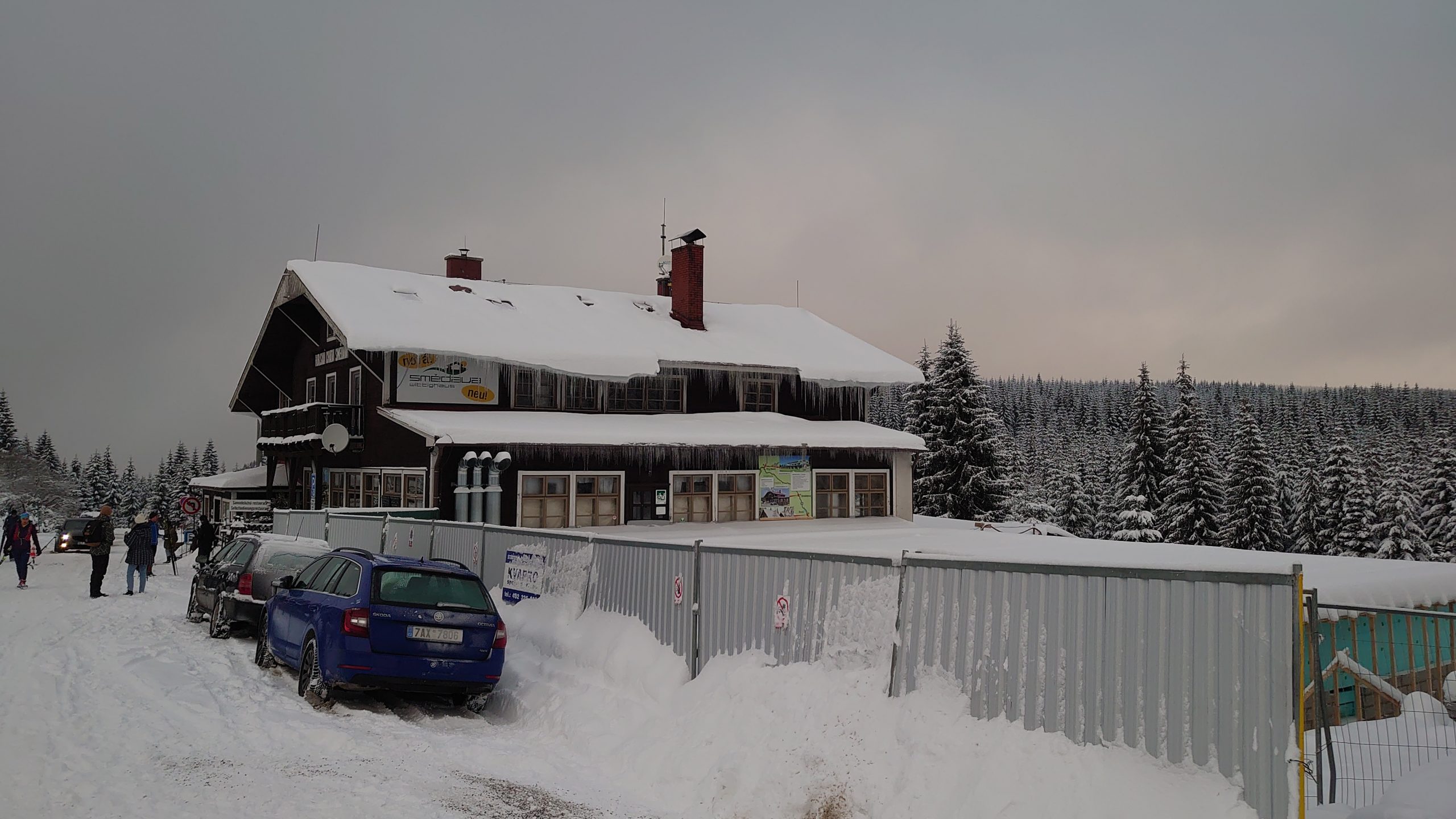 na něhož jsme se stěží vyškrábali, stál za to. Okruh se uzavřel na Předěl a závěrečnou stopou až ke Smědavě. Restaurace otevřela pouze okénko i tak ho využilo hodně sportovců.