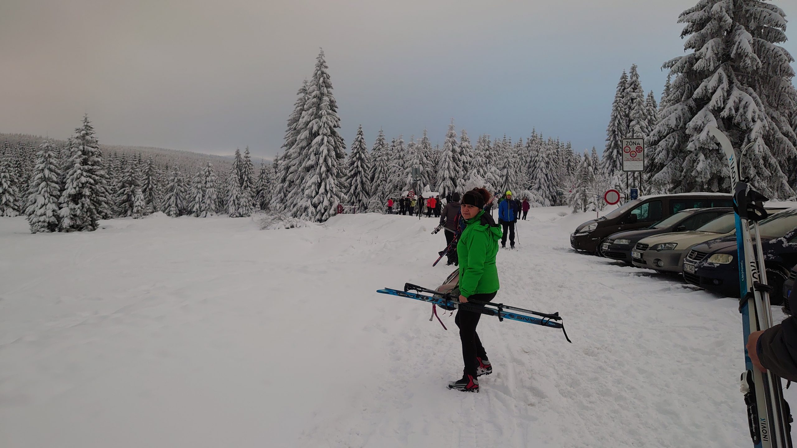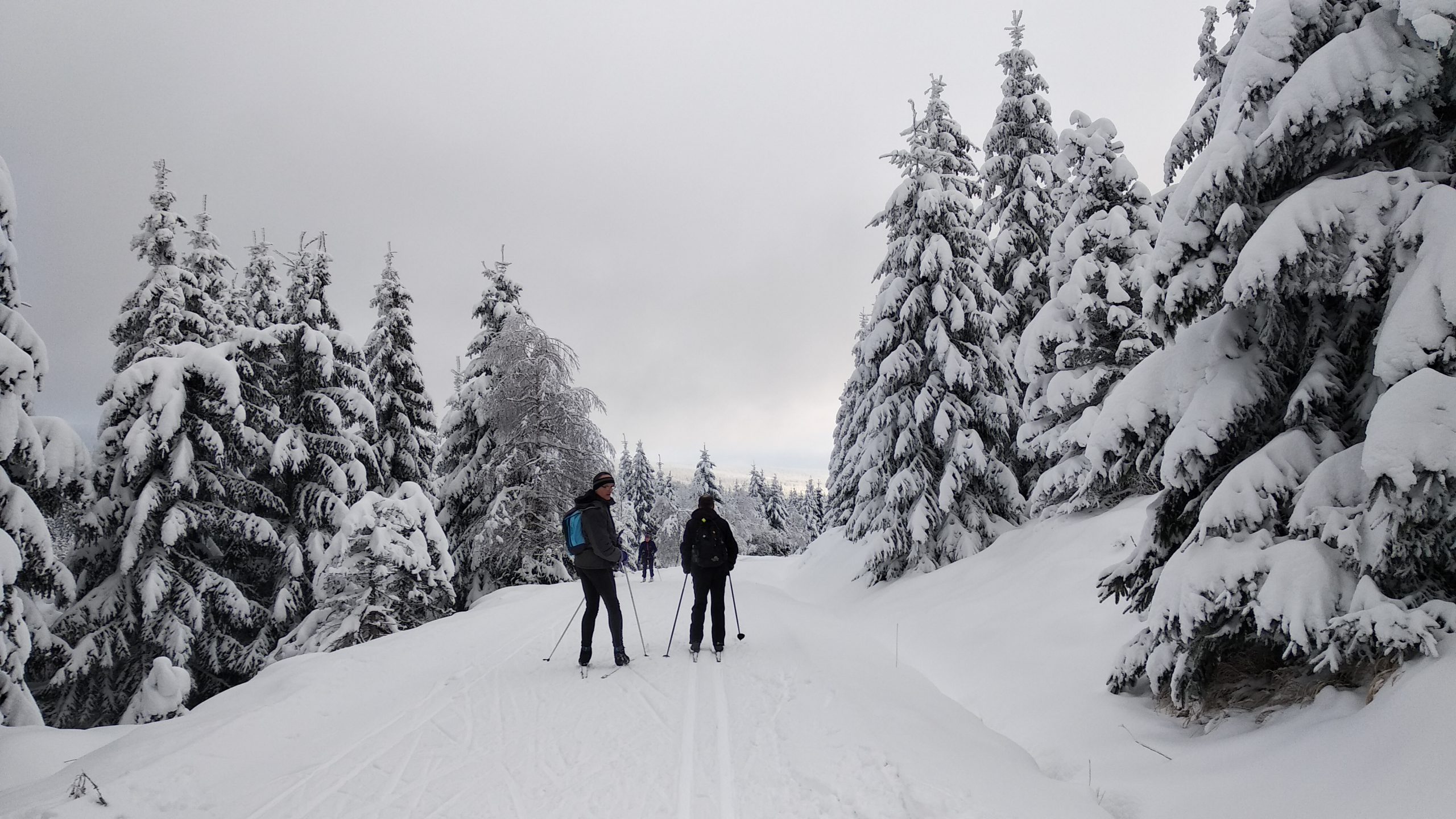 Naše první běžecké seznámení se sněhem v tomto roce nastalo o druhé sobotě v lednu na Smědavě. Pravá zima s pocukrovanými smrky lahodně doplňovala sportovní výkon tří parťáků za oblačného počasí na okruhu Předěl – Lupínek – Na Písčinách – Paličník – Předěl – Smědava.