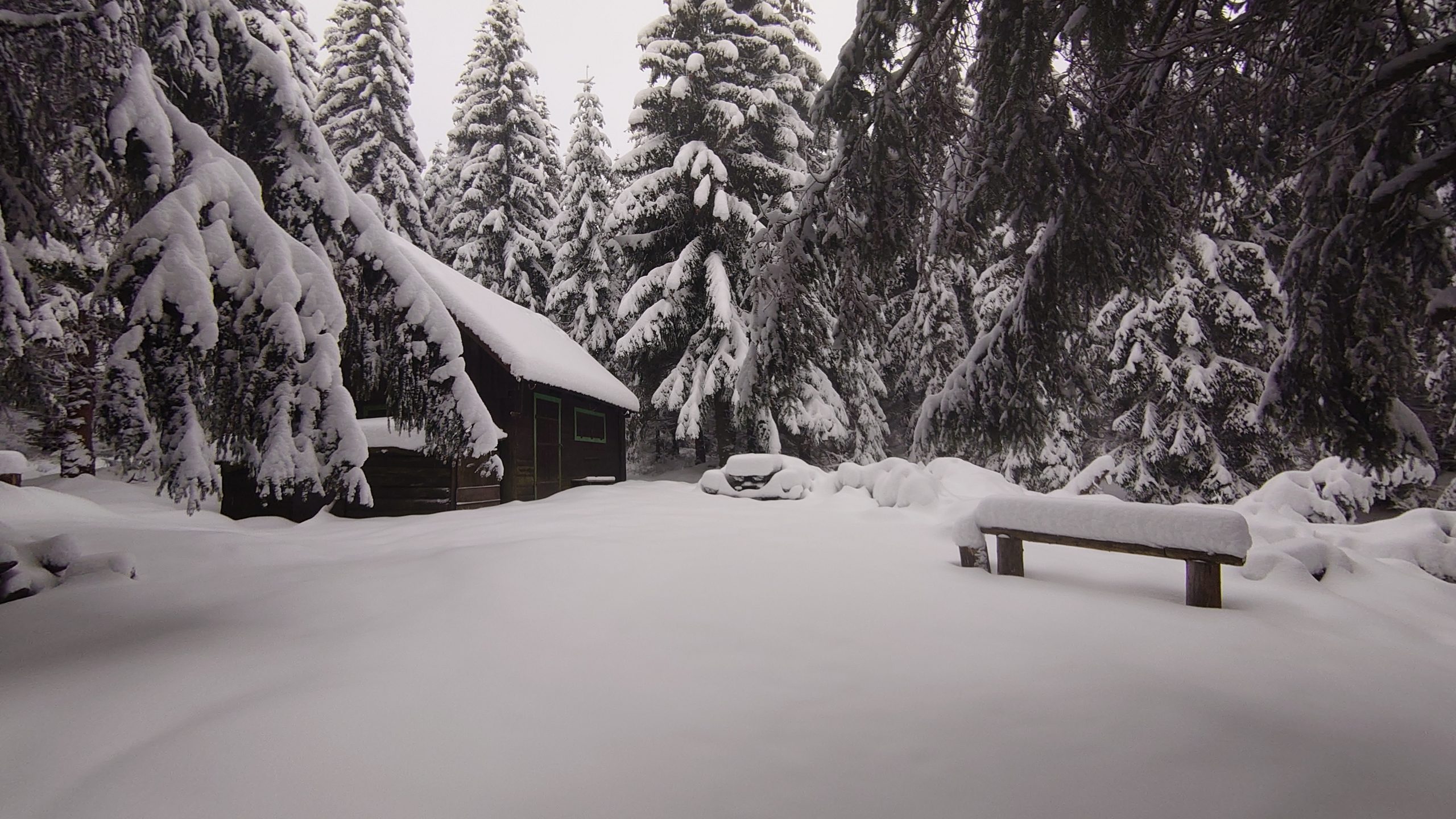 okouknout náš bývalý příbytek, jak hodně zapadl sněhem. No, za minulé návštěvy tu bylo bílé hmoty více. Pohled z Paličníku,