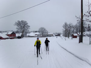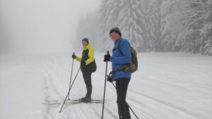Já jsem se trochu trápila s lepícím sněhem, než se nakonec ukázalo efektivnější většinu vosku odstranit, přičemž jsem si vyslechla, jaké výhody mají běžky se šupinami (svých mazacích se však nevzdám!).