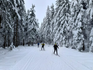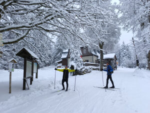Vyrazili jsme prvni prosincovou neděli, a to již v 7:50 autobusem, abychom asi po hodině cesty vystoupili na zastávce Kořenov, Příchovice, Motorest; odkud to k běžeckým tratím bylo pár kroků. Naším očím lahodila zasněžená krajina a potěšila nás upravená trasa.
