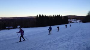Sněhové podmínky byly místy mírně ztížené, ale klouzalo to dobře (někdy až moc) a nikdo si nemohl stěžovat na lepící sníh.