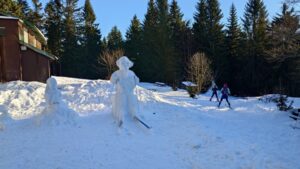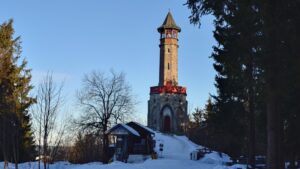 Hezké počasí vylákalo v ranních hodinách i další běžkaře, na prknech jsme však u rozhledny byli jediní. Stánek s občerstvením byl připraven na nápor turistů, takže již po 10. hodině lákal svými otevřenými okenicemi k nákupu pochutin, suvenýrů a vstupenek na rozhlednu, my jsme však ponechali prostor ostatním návštěvníkům (nějak zapadla myšlenka vystoupat s běžkami na vrchol Štěpánky – tak že by do třetice? :-D)