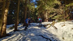 Tentokrát byla naše sestava rozšířena o Šárčinu kolegyni Jitku a její dceru Lucku. Čas a místo startu byli stejné, opět jsme započali naši výpravu na osvědčené zastávce Kořenov, Příchovice, Motorest. Slunce již sežehlo většinu sněhu z korun stromů, na zemi ho však pro naše potřeby bylo dostatek. Naše kroky a skluzy se ubíraly nejkratší cestou k rozhledně Štěpánka, tudíž stejně jako minule.