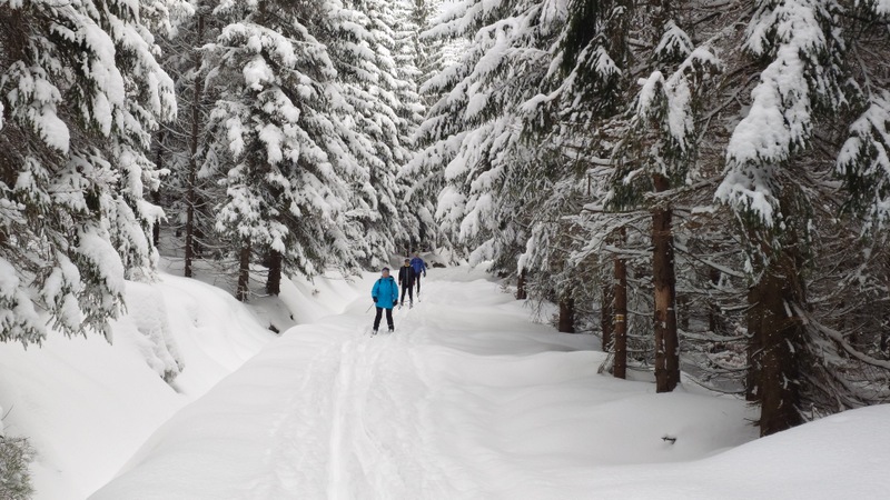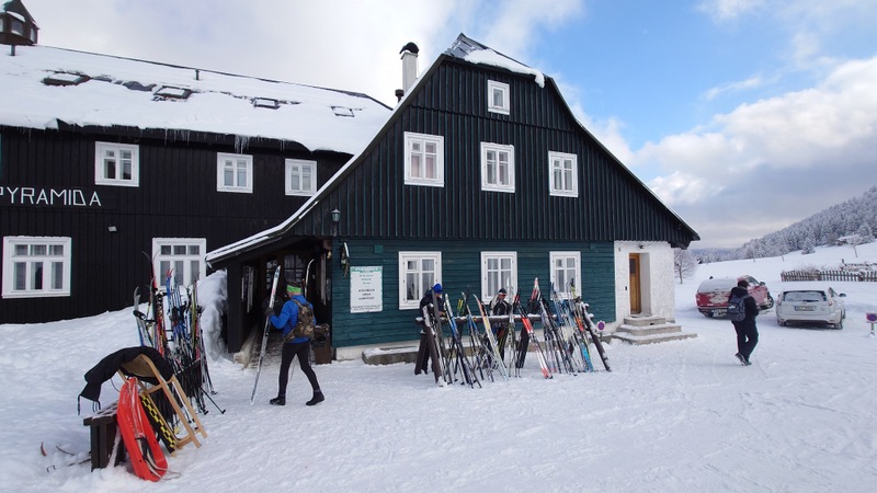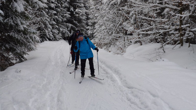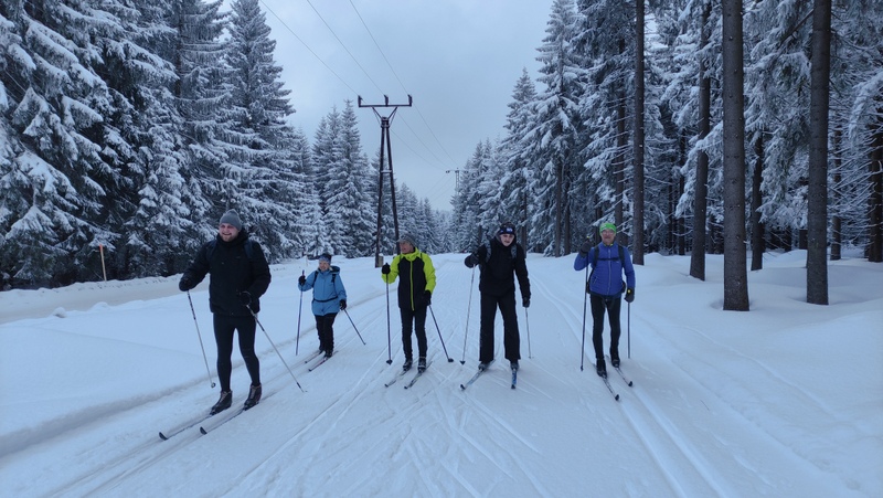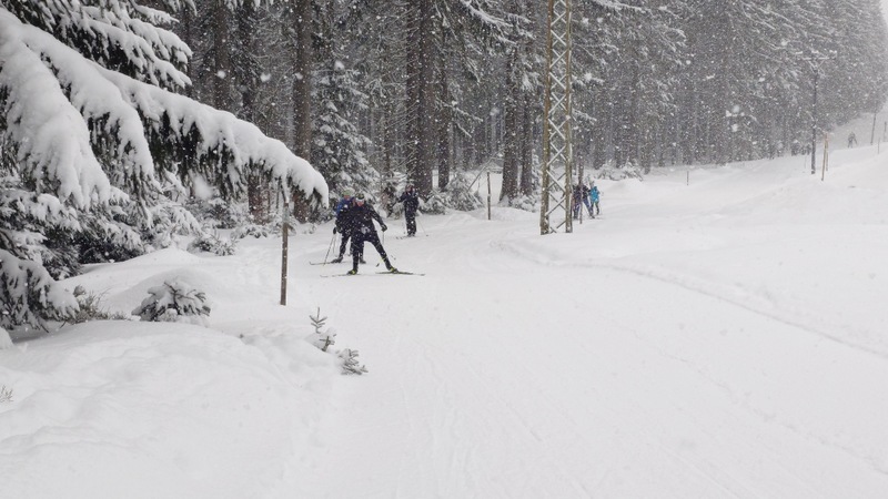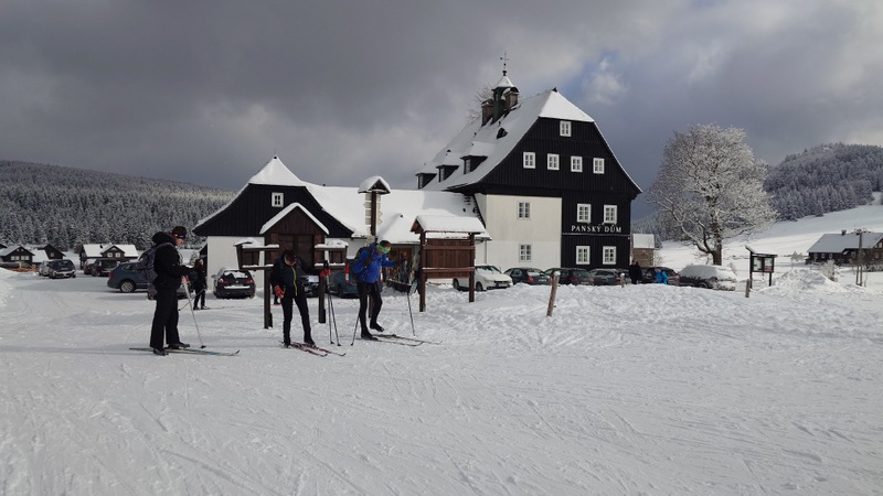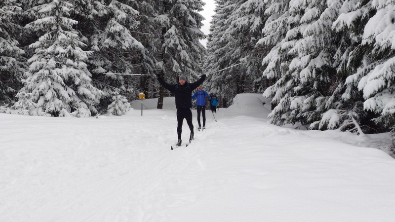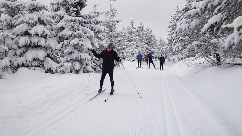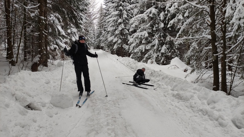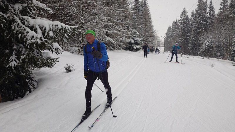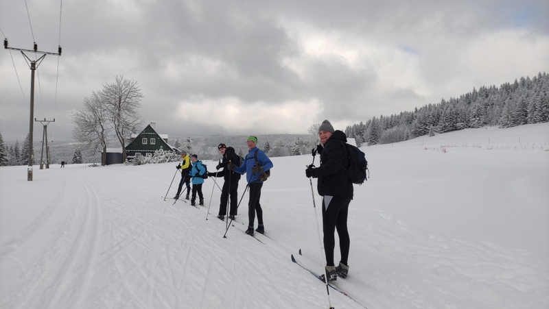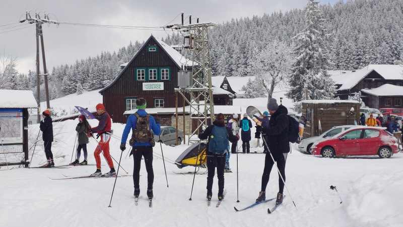 Běžkaři se nadměrným pohybem potili, nadávali, zpívali jako důsledek výstupu k Pašerácké cestě. Odsud se naopak sjíždělo opatrně k Lesnímu baru Kromerově chaty.