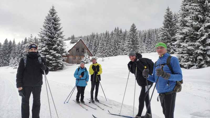 Únorovou sobotu sekce běžkařů v partě Hic vymyslela plán zaběžkovat si na příjemně napadlém sněhu. V Jablonci k nám přistoupila Dana a spolu s námi se odvážil vyrazit i Kuba od Vládi. Vystoupili jsme v Kořenově s nápadem dojít pěšky na rozcestí.