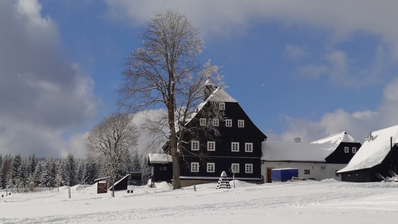 Krásně mrazivé slunečné počasí dalo vyniknout panoramatům obce Jizerky, k níž jsme přiběhli něco po jedenácté.