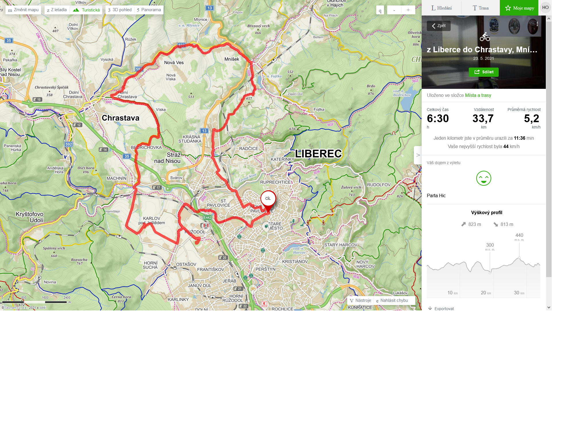 Po sobotním závodě jsme toho neměli dost a s celou partou vyjeli na kole protáhnout si nožky. Ve slunečném odpoledni se osmičlenná parta rozjela směr Ostašov na hřbitov Zajatců 1. sv. války. Mezitím si odskočila k Opičákovi poblíž Globusu, o této přírodní rezervaci jsem nevěděl, ale nic významného, krom bažin a polámaných stromů s nedostupnou vyhlídkou, se zde nevyskytovalo. Po návštěvě symbolického hřbitova se jelo na Machnín, přes Bedřichovku do Chrastavy odpočinout si na venkovní posezení s občerstvením. Polooblačné počasí se změnilo na oblačné, když od jihu se k nám blížil temný deštivý mrak. Na nic jsme nečekali a s koly se rozjeli na Novou Ves hledat přístřeší. Znal jsem tady nedalekou autobusovou zastávku, jíž jsme plně obsadili. Průtrž konající své dílo v Chrastavě nás potměšile minula. Popojelo se do Mníšku, v němž si holky zadováděly na dětském hřišti. Další vlna oblačnosti přerušila roztomilou dětinskost žen ve zralém věku a v sedle kola pádila Mníškem místními lesy přes Krásnou Studánku domů. Cyklisti si ani nevšimli, že za odpoledne ujeli přes 30km.