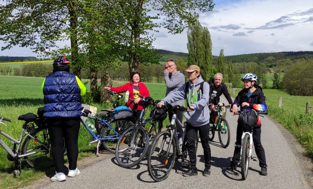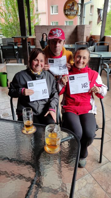 Po sobotním závodě jsme toho neměli dost a s celou partou vyjeli na kole protáhnout si nožky. Ve slunečném odpoledni se osmičlenná parta rozjela směr Ostašov na hřbitov Zajatců 1. sv. války. Mezitím si odskočila k Opičákovi poblíž Globusu, o této přírodní rezervaci jsem nevěděl, ale nic významného, krom bažin a polámaných stromů s nedostupnou vyhlídkou, se zde nevyskytovalo. Po návštěvě symbolického hřbitova se jelo na Machnín, přes Bedřichovku do Chrastavy odpočinout si na venkovní posezení s občerstvením. Polooblačné počasí se změnilo na oblačné, když od jihu se k nám blížil temný deštivý mrak. Na nic jsme nečekali a s koly se rozjeli na Novou Ves hledat přístřeší. Znal jsem tady nedalekou autobusovou zastávku, jíž jsme plně obsadili. Průtrž konající své dílo v Chrastavě nás potměšile minula. Popojelo se do Mníšku, v němž si holky zadováděly na dětském hřišti. Další vlna oblačnosti přerušila roztomilou dětinskost žen ve zralém věku a v sedle kola pádila Mníškem místními lesy přes Krásnou Studánku domů. Cyklisti si ani nevšimli, že za odpoledne ujeli přes 30km.