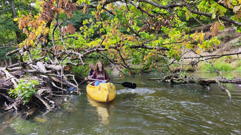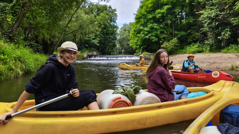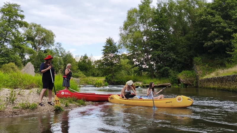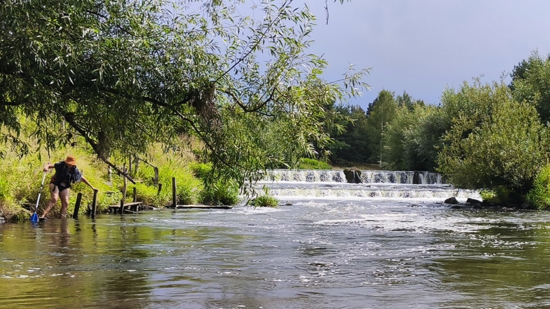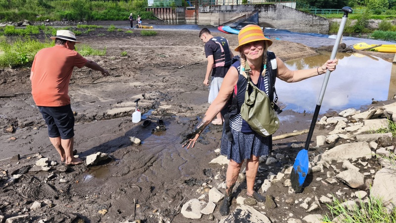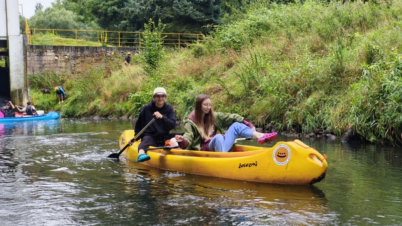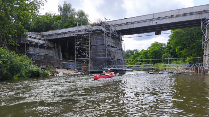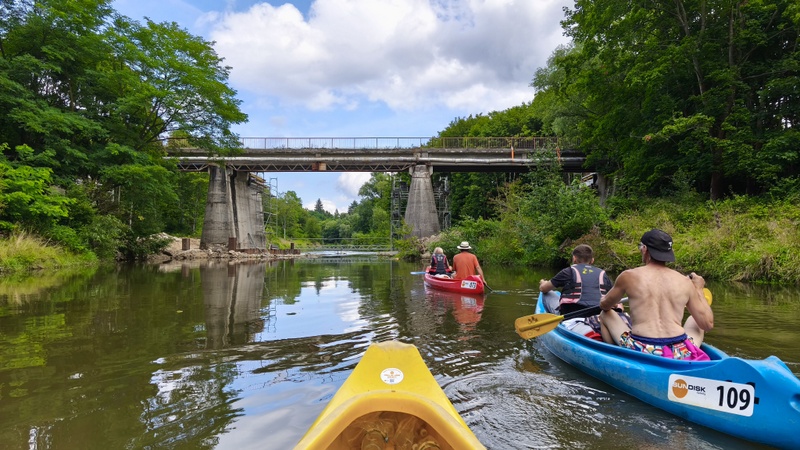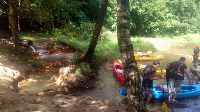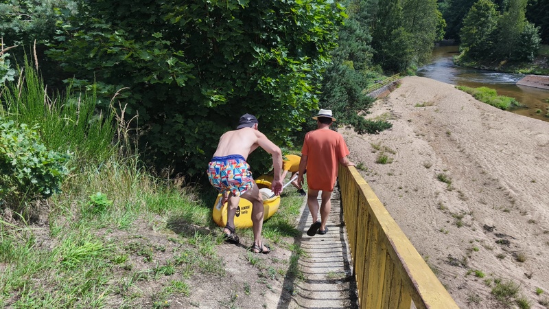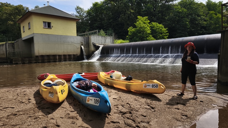Já se Šárkou jsme chytaly splašené loďky s bagáží. Zajímavostí byl, železitý proud teplé vody s přilehlého potrubí. Že by lázně? Koryto řeky se rozšířilo do stran, kde na pravém břehu mezi stromy se nacházela stará opotřebovaná rozhledna k zamyšlení, proč se netyčí na vršku?