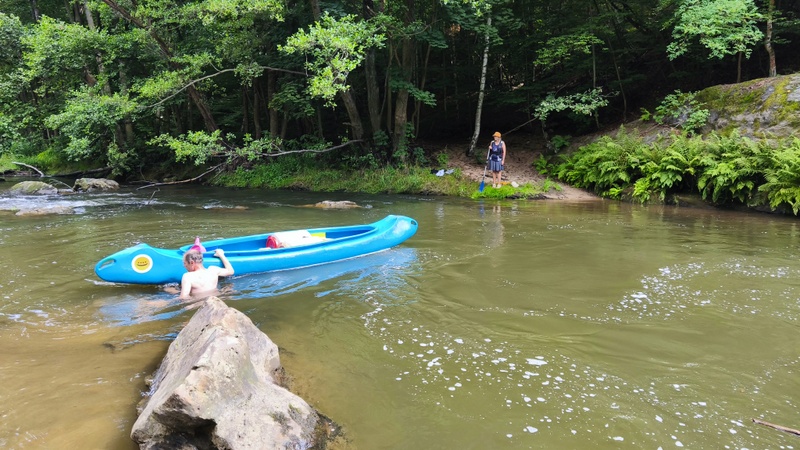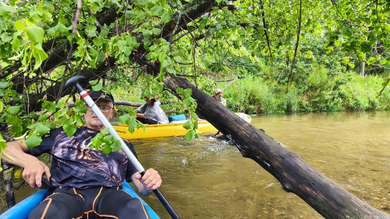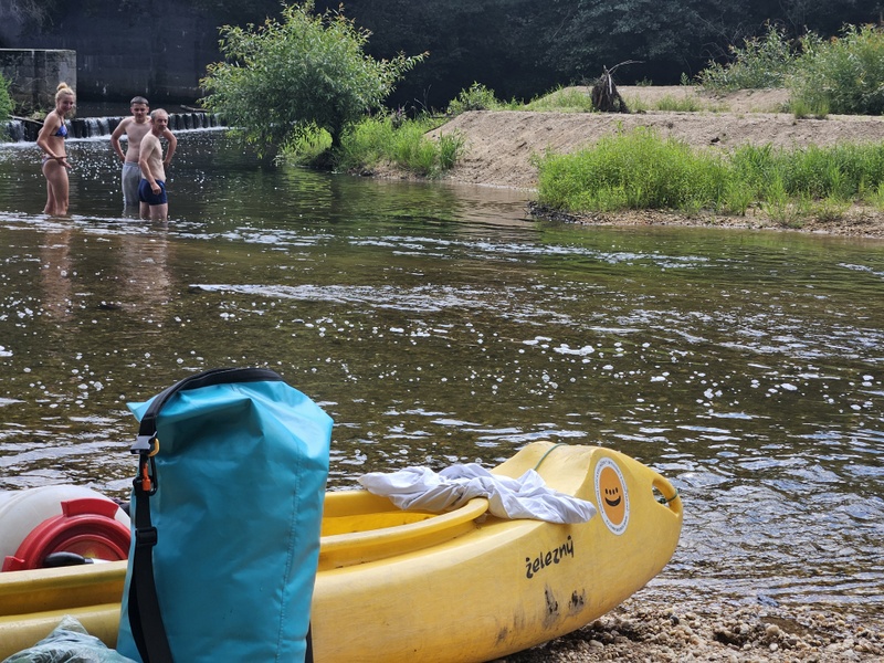 Objevili jsme vzácnost v podobě brouka roháče, jenž chtěl prozkoumat cizí společnost nebo ucítil vůni jídla. Po hodince po půl třetí se již plulo po řece, abychom po hoďce opět přenášeli nesjízdný jez.