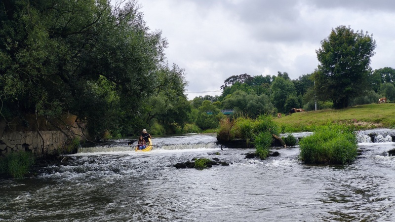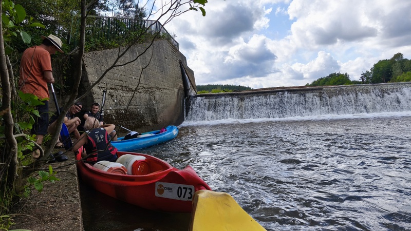 Překonali jsme překážku, za níž čekala po kilometrech další. Buď peřeje nebo jez, který se dal splout případně přehrada/elektrárna kolem níž se plavidla přenesla. Pokud se nepletu, překážek bylo za víkend cca deset z toho tři přehrady. protože jsem měl špatnou zkušenost z kapek na displeji mobilu, který se nedal ovládat, pořídil jsem si průhledné pouzdro. Menší vadou byl poněkud rozmazanější záběr oproti ostatním fotografům-vodákům.
