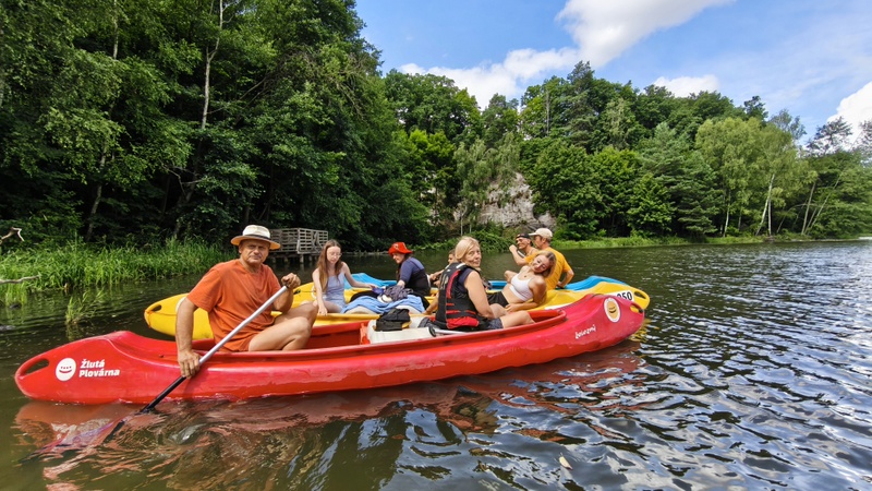 a do 17 hodin byl domluvený dojezd. Za necelé tři hodiny jsme museli zvládnout něco přes deset kilometrů. Já s Jiřkou jsme napnuly síly a střídali jsme se o vedení plavby s Jirkou a Ivetou.