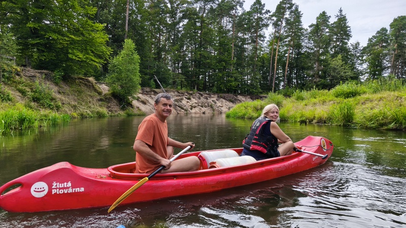 Tzn. přenášením po louce kolem vodní elektrárny. Já sám jsem zpočátku začínal na pozici háčka, ale časem se Jiřina se mnou natrvalo vyměnila a já kormidloval až do neděle.
