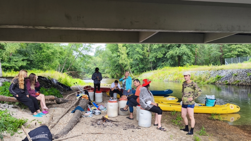 K ránu se ozývalo krápání dešťových kapek na plachty přístřešků. Asi po dvou hodinách to Jirka a spol vzdali a odpluli za vysněným dálničním mostem.