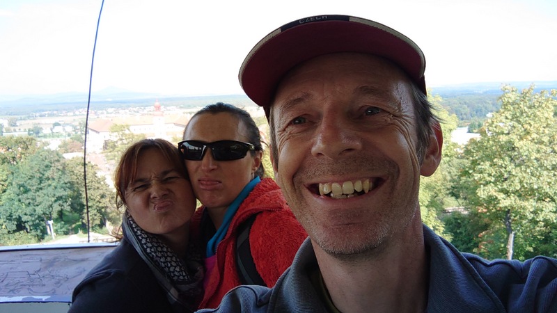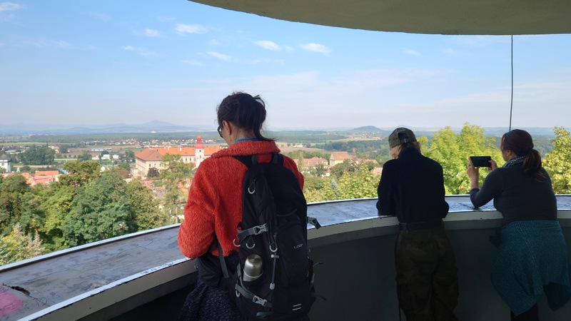 Takže v pětici jsme absolvovali v poklidu jízdu vlakem s dvěma přestupy v České Lípě a Lovosicích. V Roudnici se naplnila hladová bříška průměrným obědem v restauraci na náměstí. Krátké stoupání k rozhledně Kratochvílovy nebudilo ještě pohoršení.