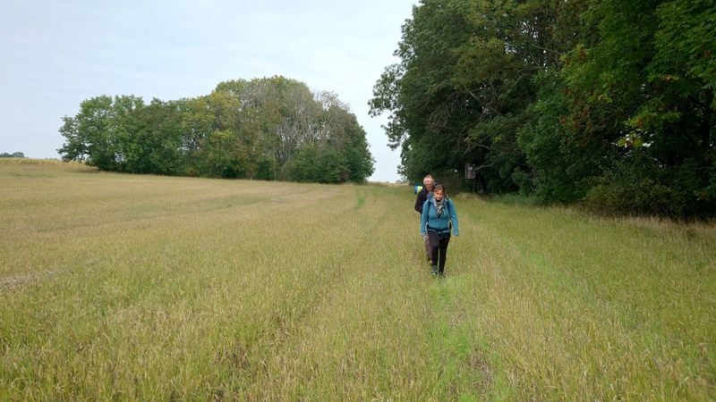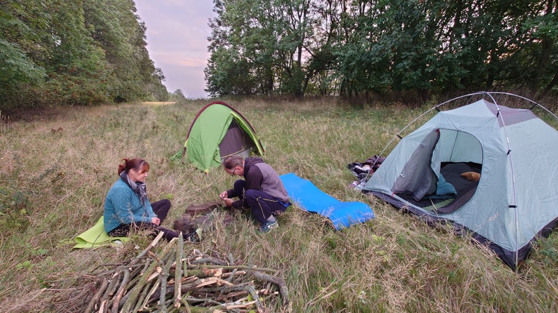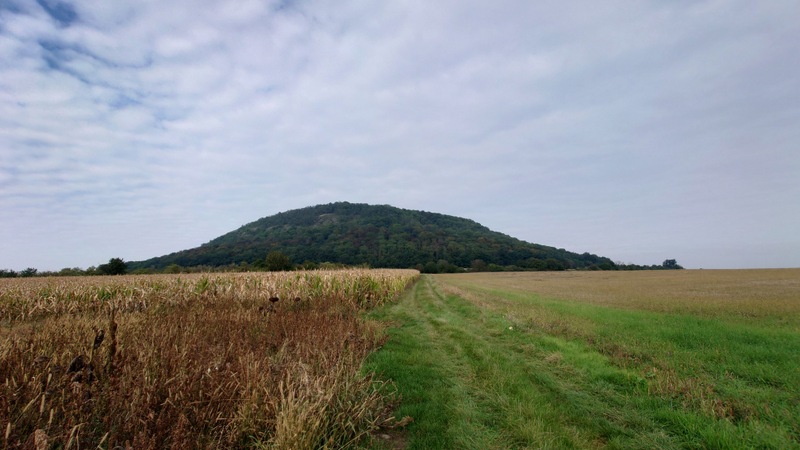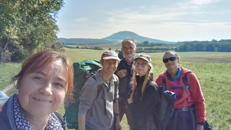 Nezvykle pozdní snídaně s buchtami a kávou uvařenou na vařiči přispěla k dobré náladě na louce pod Řípem. Vlažné ohniště jsme zalili vodou a po desáté vykročili přes pole