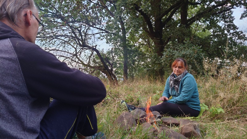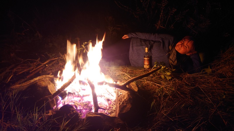 Dvě obydlí se zhotovila za pár minut, byť by stačilo jediné. Nasbírali jsme suché dřevo na slíbený oheň. Vladimír lámal větve o sto šest. Plno popadaných soušek kolem nás nám usnadnilo práci a čas. Vytvořili jsme si z kamenů ohniště pro klid v duši před propálením travin.