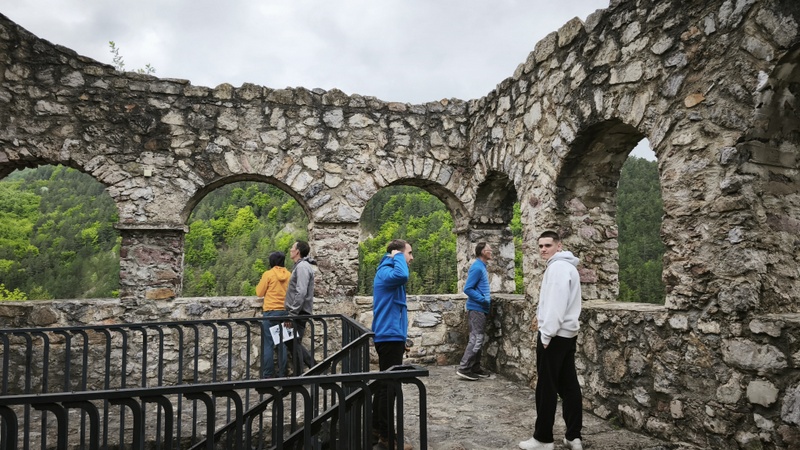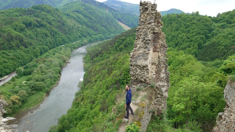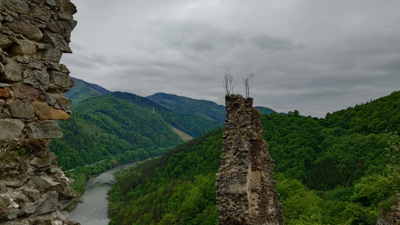 Scházelo se podél hřebene na Starý hrad, který nás překvapil zachovalými ruinami o něž se staraly místní organizace k zachování minulosti. Zpevněné zdi rozlehlého hradu se vzpínaly velmi vysoko nad údolím s meandrujícím Váhem.