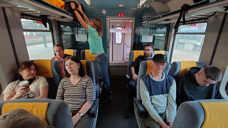 Vlak Tatran se dostavil takmer včas sem tam nějaká minuta. Ty pak naháněl až do Púchova, z něhož parta odjela do Prahy. Neobvyklá věc. Byť jsem objednával sedadla vedle sebe, systém nás rozsadil do dvou vagónů daleko od sebe, aspoň jsme si odpočinuli. My čtyři chlapci jsme vystoupili v Libni, neboť jsme se nevešli do odvozového auta Martiny, abychom na Černém Mostě pohodově stihli Flixbus v 19.15.