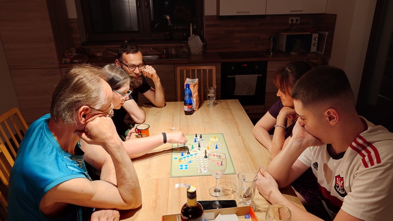 Děvčata připravila jídlo ze zásob – kuřecí plátky se zeleninou, v nabídce večeře se nacházely i jiné pochutiny od zdravých oříšků po ovoce. Silná bouřka s deštěm se zanedlouho přihlásila, na níž jsme odpověděli hrou Člověče nezlob se, která se zdála nekonečnou i o třech figurkách.