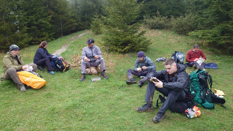 Náročný výstup pokračoval do přestávky na rozcestí v sedle pod kopcem Kojšová se odolní jedinci bez báglů vydali k odbočce k velmi strmému vrchu Kojšová.