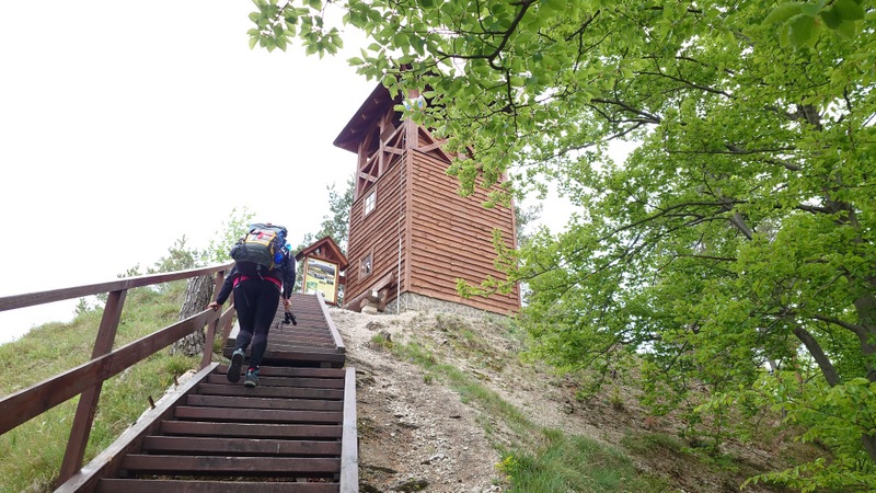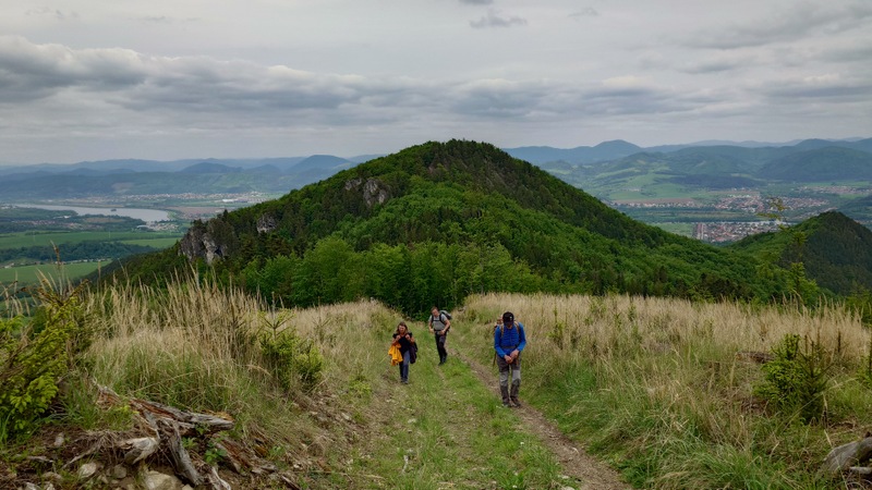 Na Velký Rozsutec se díky ochraně přírody do 15.6. lézt nemohlo, obešli jsme ho po modré značce k vrchu Stoh. Nasadili jsme hole, o něž se člověk mohl opírat na náročném nerovném povrchu.