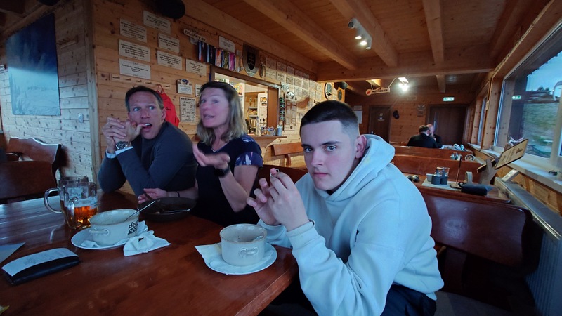 Uvnitř seděli s pivem první tři a objednávali si jídlo. Když dorazil Štěpán s historkou, že mu volala Šárka, ať si dá pozor na medvěda. Prý dva viděli pohybovat se před klečí. Za nedlouho vyprávěli jak něco v dáli se podobalo hnědému huňáči s mladým. Proč ale nefotila sama nedokázala vysvětlit. To byl poslední a jediný zážitek této výpravy, kdy se tato šelma objevila. Možná. Objednali jsme si jídla, kofolu, piva a zaplatili i kartou ubytování.