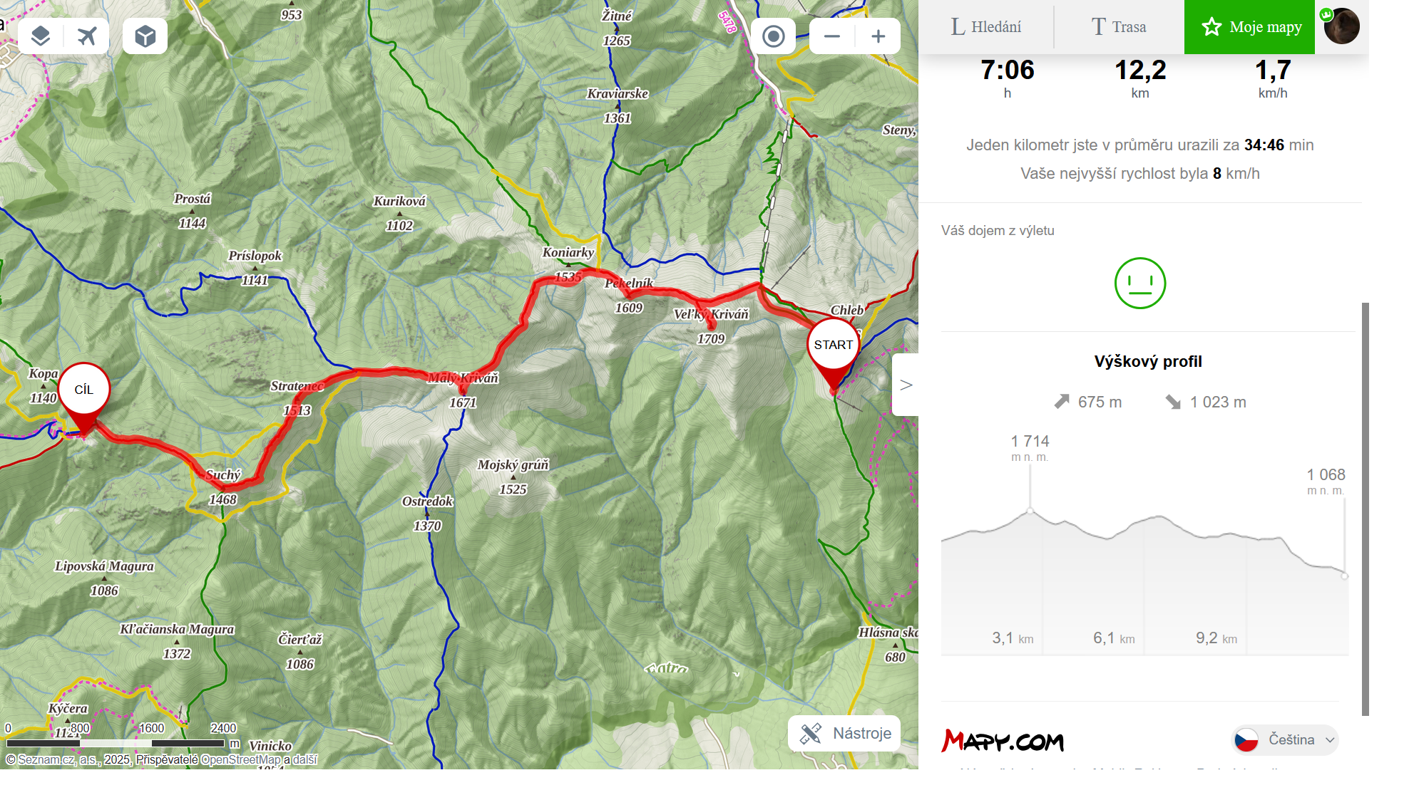 Tento den se plánovala trasa kolem 12 km. Minulý rok jsme ji šli téměř stejně. Batohy se nechaly pod vrcholem Velkého Kriváně, abychom si ho užili v pohodě bez zátěže.