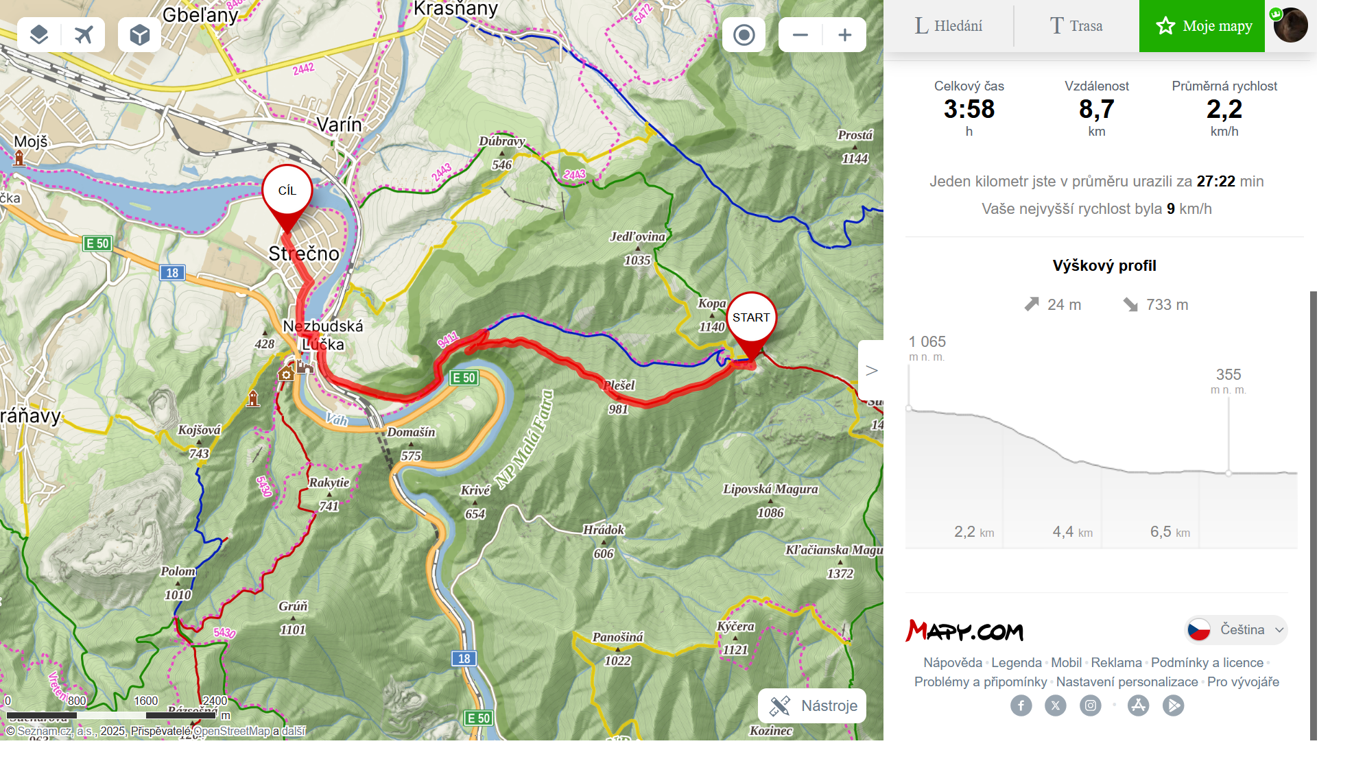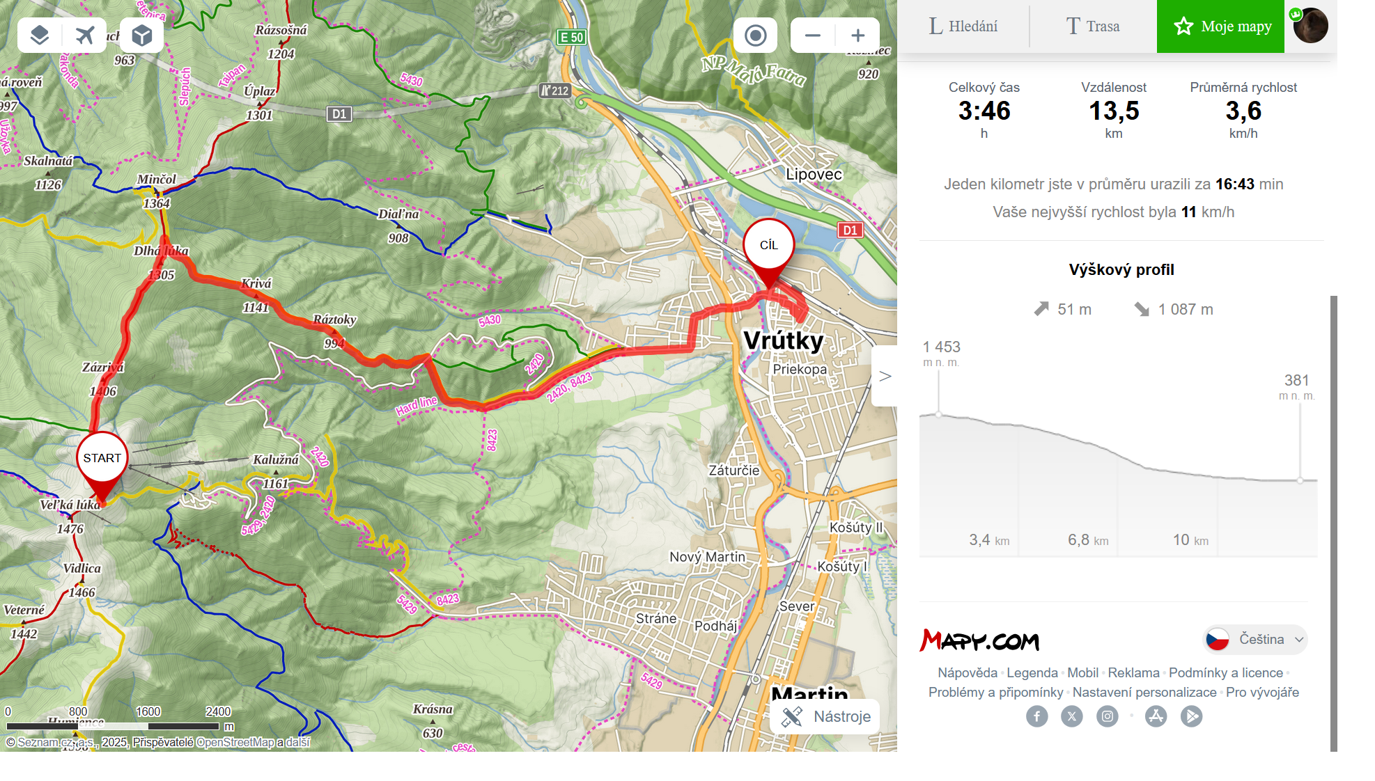 Z vrchu Dlouhé louky jsme se napojili na žlutou směřující postupně dolů do Vrútek. Během sestupu jsme se dozvěděli zvláštní informace. Zemřel herecký bůh Jiří Bartoška, aby se ve Vatikánu objevil bílý kouř s volbou nového zástupce boha na zemi papeže Lva XIV.