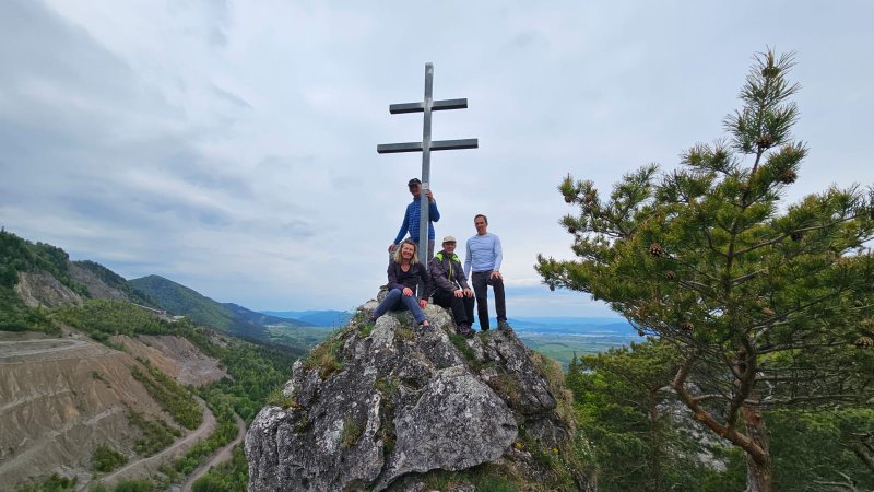 Naproti se vyzývavě tvářil skalnatý útvar upravený k lezení s vrcholovým křížem. Ti co přišli, na něj vylezli.