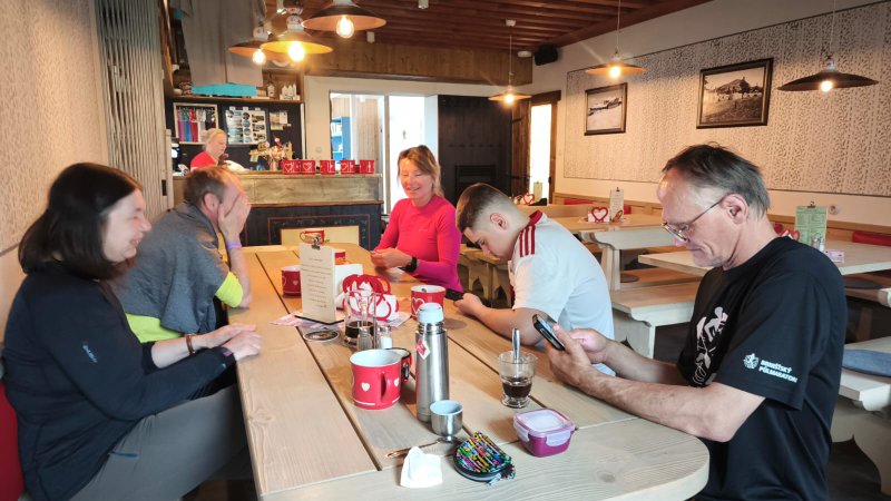 Po 20 hodině Šárka, Vláďa, Martina se vykoupali v otužileckém bazénu, jimž jsem mohl závidět. Nastydnutí mi nedovolilo, zde již podruhé, ponořit se do průtokové studené vody. I tak se rýma nelepšila ba naopak přecházela v suchý kašel. Pokoj jsme dostali v přízemí vedle baru přímo pro devět osob s tříposchoďovými palandami. Co jsme zjistili na chatě se ubytovali jen dva lidé a ti přespávali venku ve stanu. Večer jsme hráli oblíbené Člobrdo, které se i dohrálo a tím šťastným se stal Štěpán, který doputoval první do domečku.