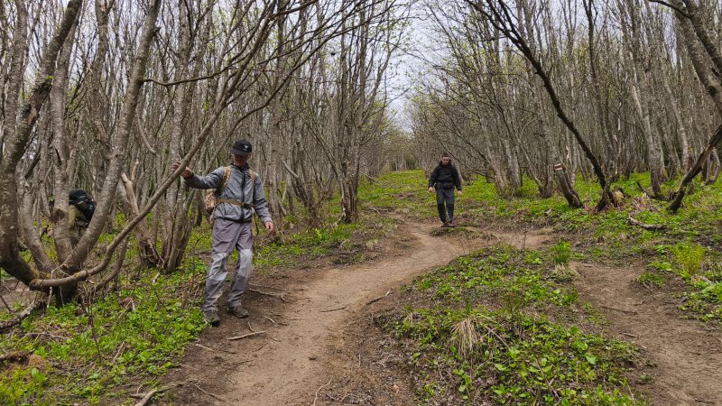 Přešli jsme Poludňový Grúň, Steny severní i jižní a blížili se k odbočce na chatu. Tomáš se rozhodl jít svým dlouhým krokem napřed, Diego závodil před Ivonou za jakou dobu vyběhne kopec, já se potil s batohem na zádech stejně jako zbylí cestovatelé za mnou. Vítr foukal silnější, zima kolem 10 st na květen zde obvyklá. Hole mi pomohly sejít nepříjemnou spojku dolů mezi kleče po stezce přímo k chatě.