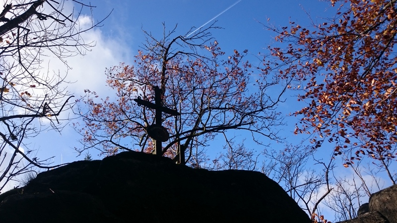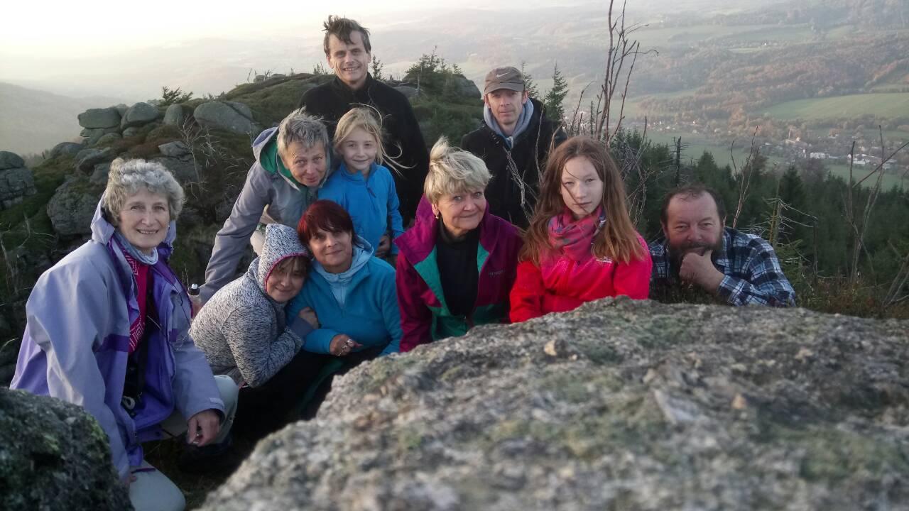 Zde se pod vrcholem zanechala bagáž a doputovali jsme na skálu Frýdlantské cimbuří vzpomínajíc na poslední návštěvu party Hic za silného větru.