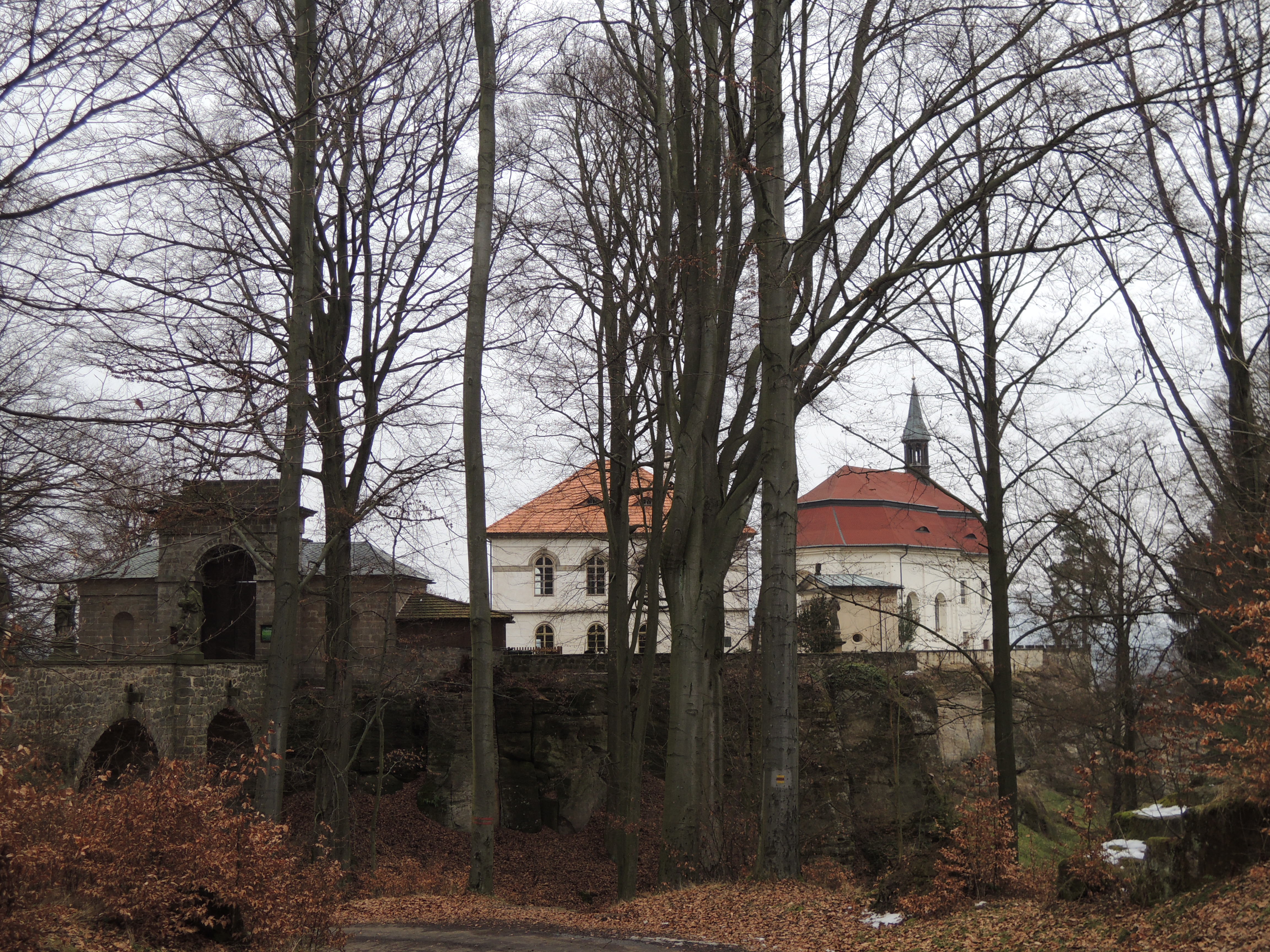 do Českého Ráje na Hrubou Skálu se uskutečnil bez dětí za účasti šesti členů ( a pes) naší velké party. Počasí studené, oblačné zkrátka ještě zimní. Od železniční zastávky jsme postupně putovali mezi vysokými skalami v lesích