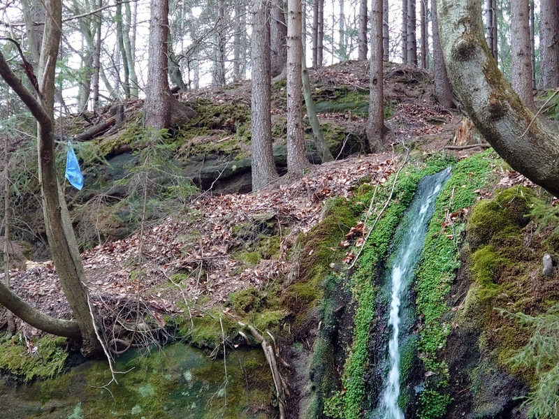 Bedlivě jsme prozkoumali prameniště vedoucí ke studnám s ochranným pásmem. Nad Lučním vodopádem jsme po několika měsících vyvěsili modrou klubovou vlajku od naší šikovné kamarádky a spokojeně se kochali na cíl výletu.