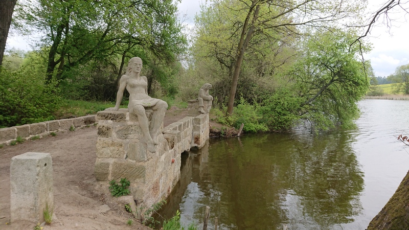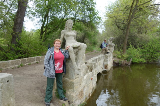 Krásný  most přes Bobří potok obdařený sochami panny Katynky a Hastrmana-žabáka si všichni vyfotili.