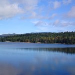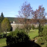 Okolo přehrady Bedřichov přes Olivetskou horu a Polední kameny se zlatě obalenými listy buků,