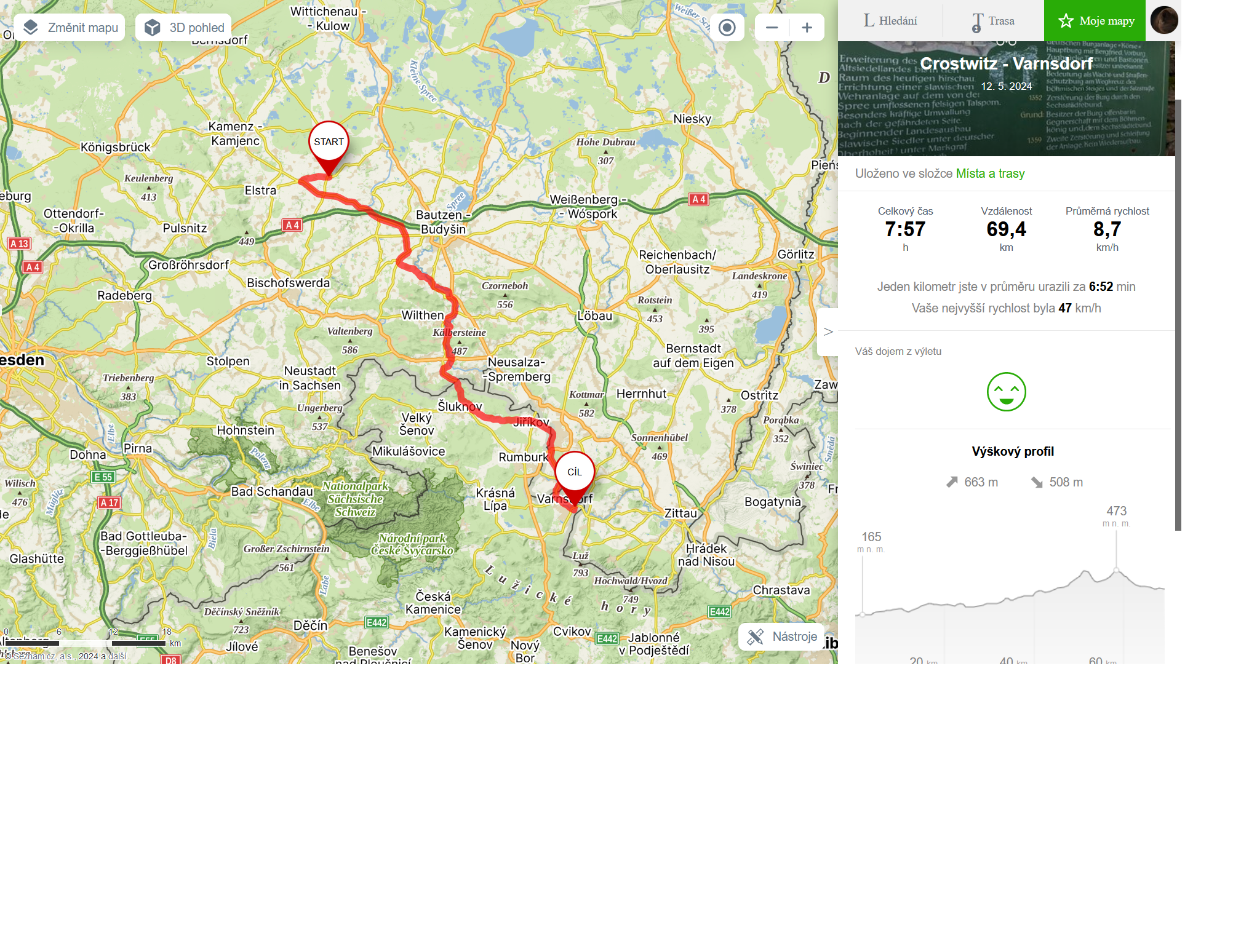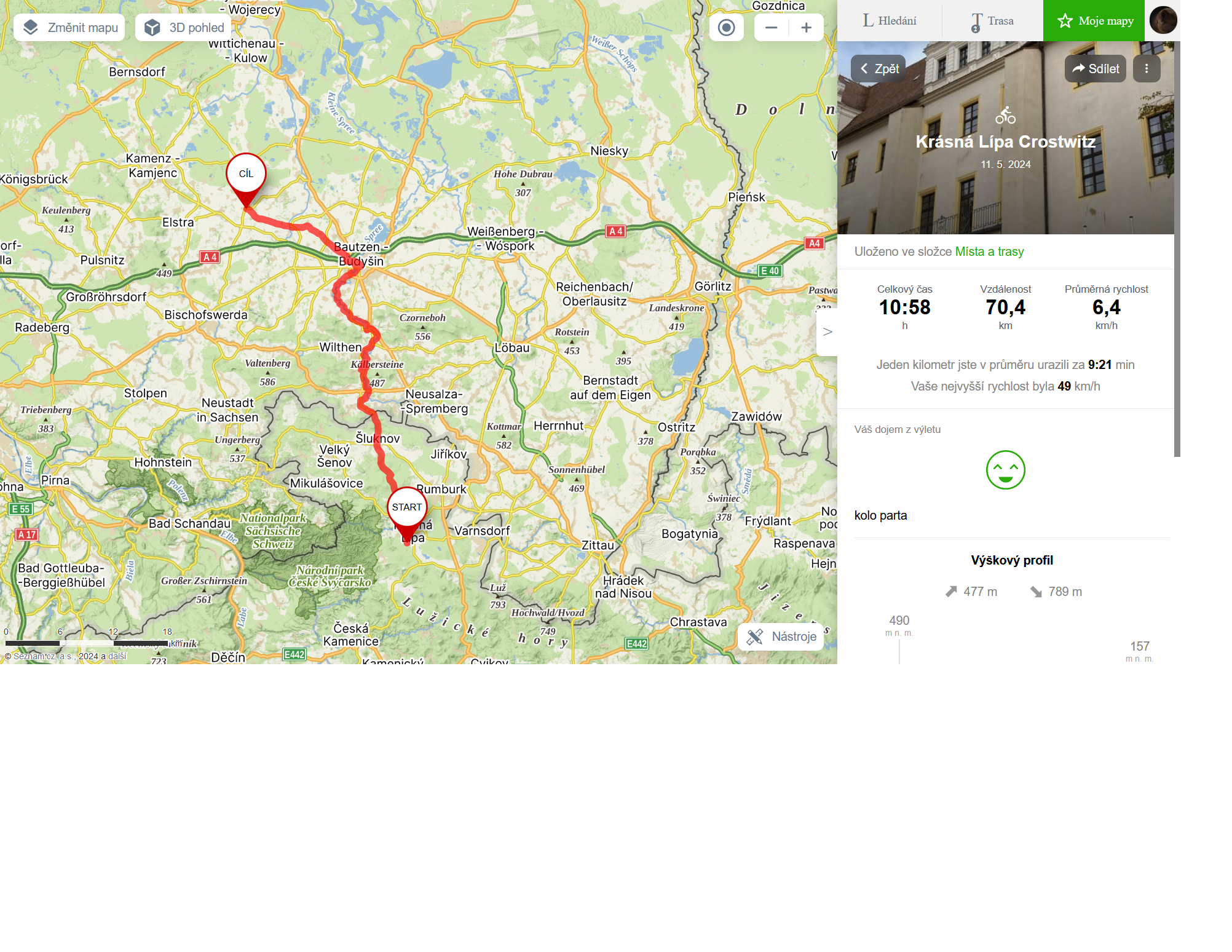 Nadešel nejvyšší čas k rozloučení, abychom stihli spoj a nečekali jsme. Trasa zpět se nám párkrát ztratila, ale díky sledovanosti GPS jsme včas odhalili chybu. Náročnější výstup nastal po odbočce před Šluknovem. Asi pět km pozvolného stoupání dalo zabrat. V Jiříkově jsme opět překročili hranice do Němec do města Neugersdorf.