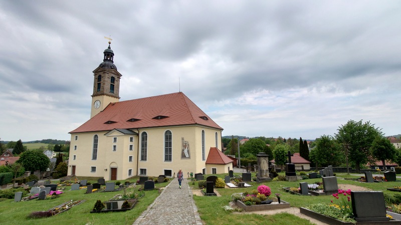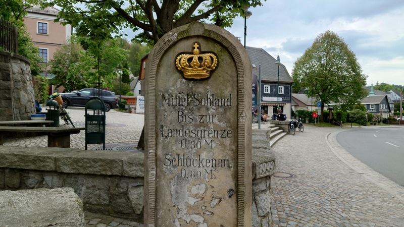 Další trasa vedla z Čech po cyklostezce na hranici k obci Rožany. Na německé části nás vítali demonstranti s vlajkami Německa, EU, Saska za posílení dotací pro zemědělství. V prvním městě na druhé straně, v Sohlandu nad Sprévou, se cyklisté zastavili u evangelického kostela na prohlídku hřbitova.