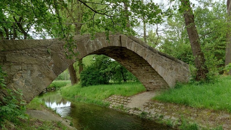 Jak Jiřina s dcerou čekali u kol, nevšimla si při odjezdu svého zapomenutého batohu u kašny. Vzpomněla si na něho asi po kilometru jízdy. Naštěstí byl na místě a v pořádku. Mezitím jsme objevili místní historický viadukt, který se v minulosti nacházel na pečetidle města.
