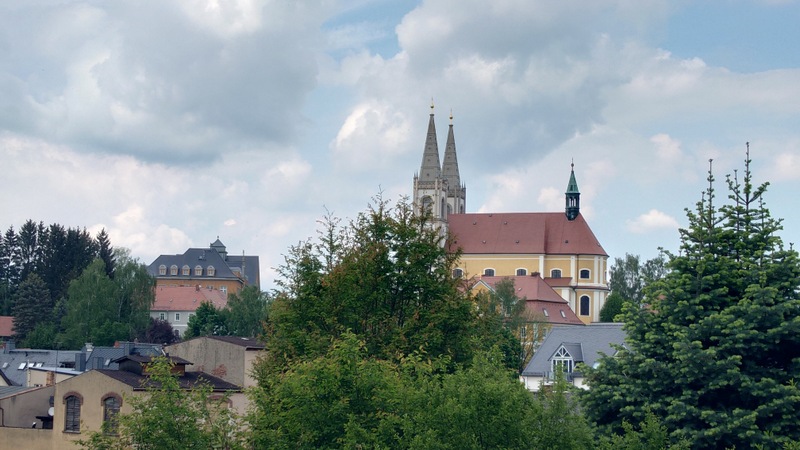 V Schirgiswalde jsme si prohlédli kostel Na Nebevzetí P. Marie, kde uvnitř secvičovali hudební program.